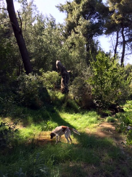 Täglich schaue ich den Feigenblättern beim Wachsen zu. Schon öffnen sich die grünen Hände.Nachts geht es durch ein stark beleuchtetes Pinienwäldchen, immer dem Ruf des Käuzchens nach. So komme ich über die Tage und Nächte.