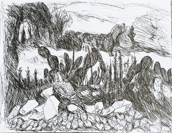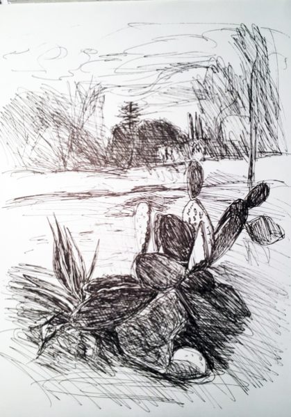 Deine erste Version der Geschichte gefällt mir am besten, liebe Gerda. Da sah ich fast den Feigenkaktusgarten entstehen und überlegte noch, ob er sich anpasst an die Umgebung, wie er auf Dich wirkte und ob er vielleicht ein wenig zu künstlich wirken könnte und in der dritten Geschichte hörte ich, daß er Dir gut gefällt und Deine mittlere Zeichnung *Feigenkaktusbeet…* gefielt mir sehr.