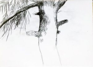 - „unsere Pinie“, 2020-05-18, später Vormittag, Bleistiftzeichnung Effi Ts
