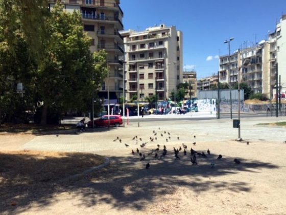 Vorplatz mit Tauben, davor tut sich was: Polizei sperrt die Straße