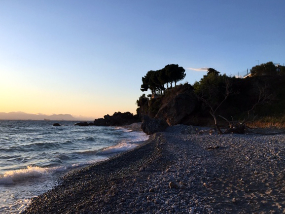 Heute Abend: Außer mir kein Mensch in der Bucht. Das Meer unruhig. Kalt und sehr erfrischend das Bad.