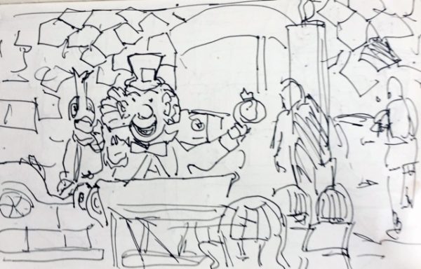 Auf Buch-Vorsatzblättern zeichnen: Kinderspielgerät am Bahnhofsmuseum