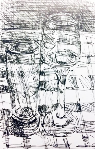 ← Weinglas bei Kunstlicht (kleines Skizzenbuch 2, tägliches Zeichnen)