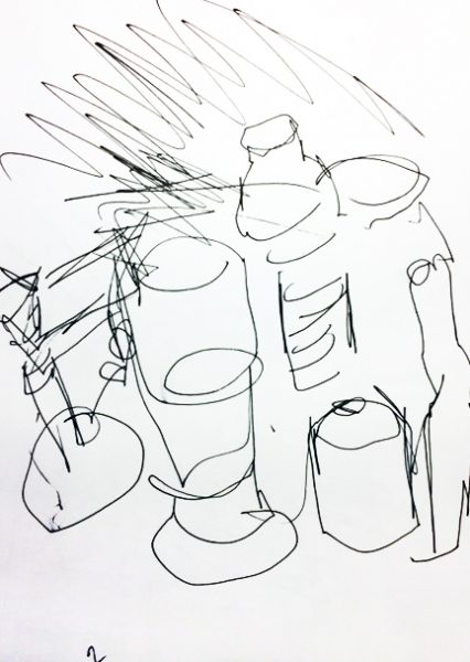 Sehend, blind, im Hellen, im Dunkeln: Skizzieren, was auf dem Tisch ist.