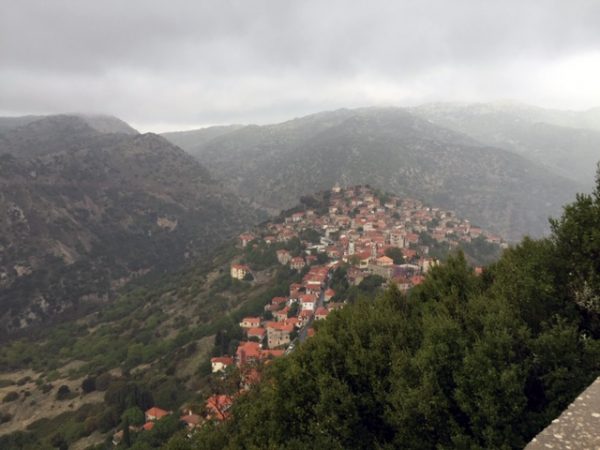 Bilder von Arkadien (1) Dimitsana: blaue Blume mit Riesenbiene, der Ort, die Geschichte