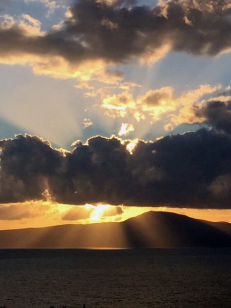 Ein wunderbares Spiel mit dem Wolken und Bergen im Hintergrund, vor allem aber auch ein wunderschöner Sonnenuntergang!🙂