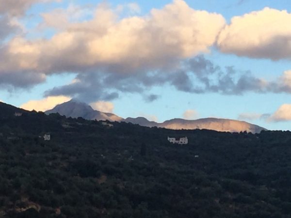 Die höchsten Gipfel – der Taygetos erreicht 2400 m Höhe – leuchteten noch lange nach.