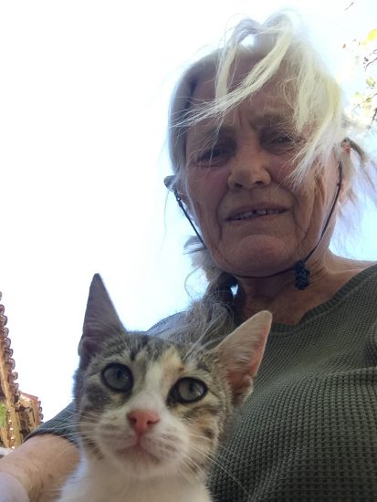 ← Selfie mit junger Katze sowie das „Kloster des Philosophen“ bei Dimitsana, Arkadien