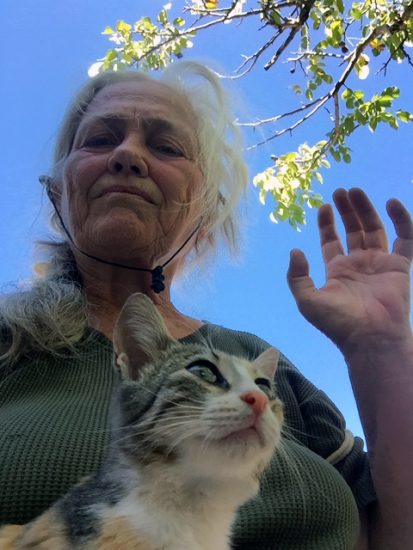 ← Selfie mit junger Katze sowie das „Kloster des Philosophen“ bei Dimitsana, Arkadien