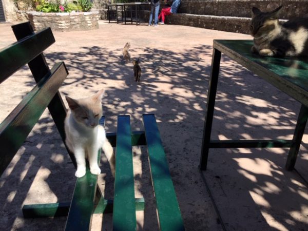 ← Selfie mit junger Katze sowie das „Kloster des Philosophen“ bei Dimitsana, Arkadien