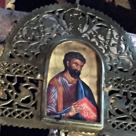 ← Selfie mit junger Katze sowie das „Kloster des Philosophen“ bei Dimitsana, Arkadien