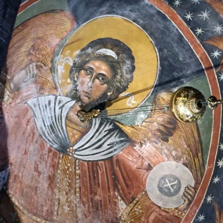 ← Selfie mit junger Katze sowie das „Kloster des Philosophen“ bei Dimitsana, Arkadien