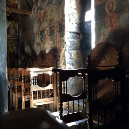 ← Selfie mit junger Katze sowie das „Kloster des Philosophen“ bei Dimitsana, Arkadien