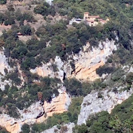 Selfie mit junger Katze sowie das „Kloster des Philosophen“ bei Dimitsana, Arkadien