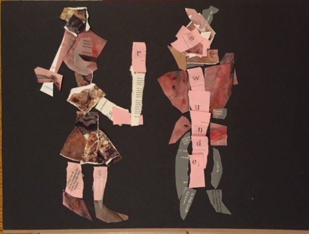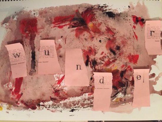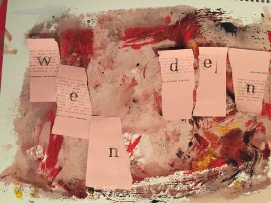 Aber würde es reichen? Wäre nicht ein weiterer Anstoß nötig? Ich zerschnitt kurzerhand die wundrote Fläche und bastelte daraus, zusammen mit Lyrifants Schnipseln, eine deutlichere Message.