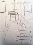 Hier noch einmal die ganze Reihe übereinander gezeichneter „Ausgänge“: vom Einkaufszentrum zum Atelier.