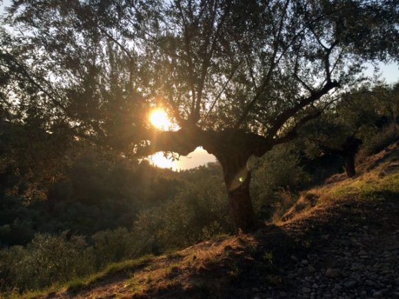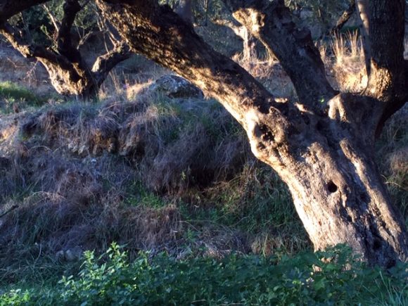 Um vier Uhr kamen zwei junge Frauen, mich zum Spaziergang abzuholen. Bestwetter. Wir wanderten über die Terrassen mit den Oliven, in schattigen Zypressensenken, freuten uns am Orangenbäumchen mit Früchten, an einem uralten Brunnen, an Herbstzeitlosen und Zyklamen. Zuletzt leuchtete auch die See zwischen den Bäumen auf. Oft waren die Pfade kaum zu erkennen. Schön ist es, auf solchen Wegen zu gehen, die vielleicht an einem Zaun, einem Abgrund enden … und dann doch immer irgendwie weiterführen. Manchmal bist zu gezwungen, ein Stück zurück zu laufen, aber was tuts? Du findest eine neue Abzweigung, ein unerwarteter Weg öffnet sich, eine steile Stelle lässt sich überwinden…