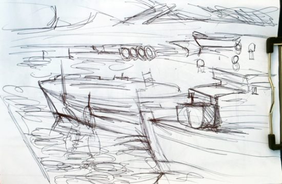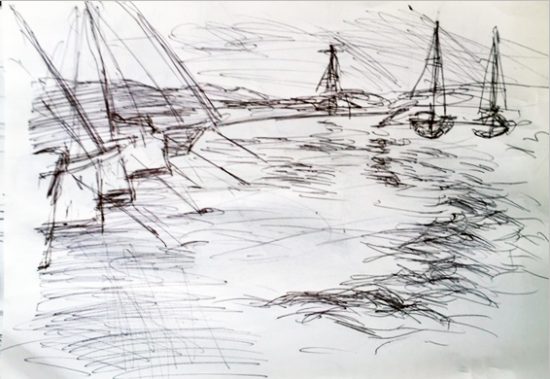 Gestern stattete ich dem Hafen von Kalamata einen Besuch ab. Am Horizont braute sich ein Unwetter zusammen, das Wasser im Hafenbecken wurde unruhig und an genaues Zeichnen war nicht zu denken.