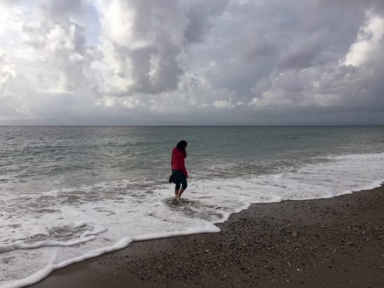„Du sitzt zu viel am Computer“, meint Will-i. „Geh lieber mit mir raus.“ Aber draußen fegt ein Sturm ums Haus, und am Meer ist es ungemütlich. „Ach was!“ sagt Will-i. „Komm, ich will mit den Wellen spielen!“ Als eine Freundin anruft, um genau dies vorzuschlagen, bekomme auch ich Lust auf einen Spaziergang.