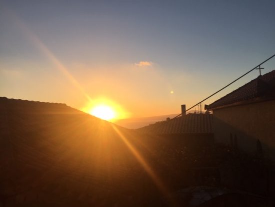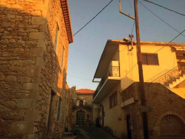 Jedenfalls bin ich froh, dass heute hinter dem maroden Zaun alles still bleibt: keiner der bellenden und zähnefletschenden Hunde lässt sich blicken, und auch auf dem Nachbargrundstück mit den abgewrackten Autos herrscht vollkommene Ruhe. Freudig wandernd lasse ich meine Augen über das sich absenkende und dann bis zur Bergkante ansteigende weite Olivenland gleiten. In einem großen Bogen gelangen wir schließlich auf die Rückseite des Dorfes.