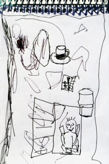 5. Unordentlich findet er Deine Zeichnungen? 🙂 Ich finde Deine Zeichnung vom Kaffeehaus ganz toll, sag ihm das!