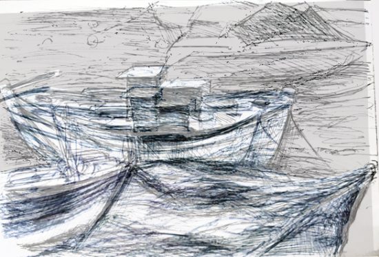 18.2.2021 Bootsgeschaukel im Fischereihafen von Kitries (tägliches Zeichen und mehr)