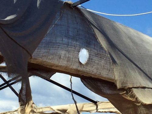 Ich hatte zu ihm gesagt: „Wir besuchen HoBos Strandbar“, und anscheinend hatte er sich schon ausgedacht, was er da verzehren wollte. Damit wurde es freilich nichts. „Das ist ja eine Gespensterbar!“ schrie er, als wir ankamen. Tatsächlich sind die Tücher, die die Sonnenhungrigen im Sommer schützen, im Winter nichts als skurrile flatternde Fetzen.