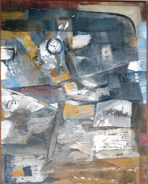 Heute – der Himmel war mit der Erde und dem Meer zu einem grauen Amalgam verschmolzen und ohne meine Will.ie fühlte ich mich wie außerhalb von Raum und Zeit – erinnerte ich mich an ein früheres Bild, das ich endzeit-endlos betitelt hatte. Es ist ein recht großes Gemälde, das ich doppelt spiegelte, so dass unsere kleine tickende Lebenszeit in den größeren Umlauf der Zeiten eingebettet erscheint.