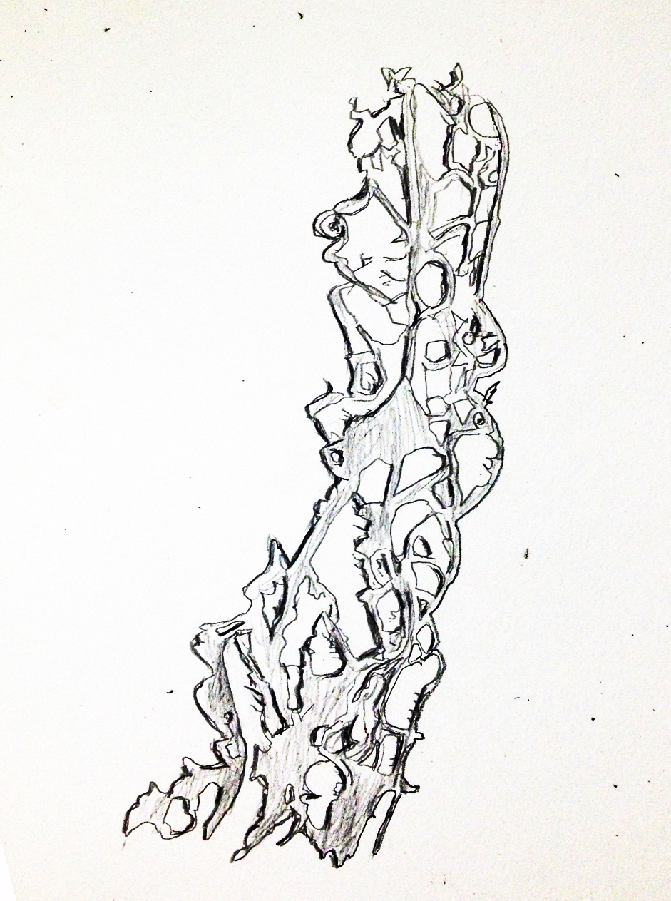 Im Laufe der Zeit habe ich immer mal wieder Borgenstücke gezeichnet und einige hier im Blog auch gezeigt. Zum Beispiel dies filigrane Borkenstück (Bleistift):