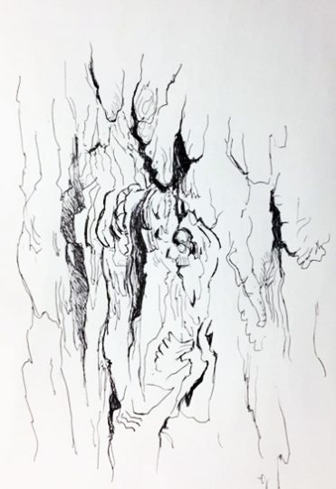 7. Die Strukturen der Borke sind beeindruckend, was in deinen Zeichnungen noch gesteigert wird. Hier fließen naturgegebene und künstlerisch gestaltete Aspekte wohl aufeinander abgestimmt zusammen.