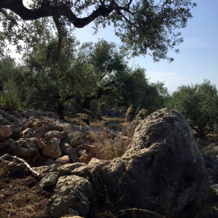 Dann aber wanderte ich weiter, links und rechts des Wegs nichts als Felsen, und zwischen ihnen wohlbeschnittene Olivenbäume, viele mit geweißten Stämmen gegen Parasitenbefall.