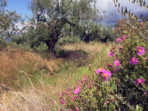 Die farbenprächtigen Frühlingswiesen sind nun schon Vergangenheit, auch die Obstblüte hat ihren Höhepunkt überschritten, dafür aber kommen nun die frischen Blätter des Feigenbaums, des Weins und des Granatapfelbaums zum Vorschein. Einige größere pollenreiche Blüten finden sich noch, insbesondere die Zistrose zieht die Bienen an.