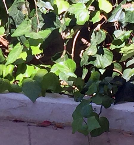 Ich habe übrigens die Prinkipissa mit den Jungen gefunden, indem ich sie nach dem Füttern nicht aus den Augen ließ: sie hat die Kleinen hinter der Efeuwand untergebracht. Eine perfekte Tarnung.