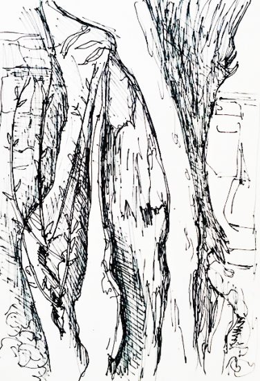so unermüdlich, unermüdlich- und sich auch dann noch in schrundige rinden eines alten baumes versetzen, zeichnerisch gedanklich, das führt zu, es führt zu…ich denke, mehr mehr anbrandendes leben…
