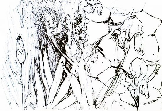 Im späten Licht des Nachmittags setzte ich mich zu den blauen Schwertlilien, die nun angefangen haben zu blühen. Sie wachsen in einer Ecke des Gartens, die von einer Feldsteinmauer eingefasst und von Rosmarin überwuchert ist.