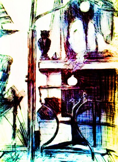 8.5.2021 mit Will.ie: Innenraum mit kleiner weißer Vase (tägliches Zeichnen).