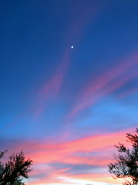 In vielen Blogs sehe ich dieser Tage Wolken, Susanne (Haun) zeichnet sie sogar. Da will ich nicht zurückstehen und einige Fotos unserer gestrigen Abendwolken präsentieren. Doch welche? Das mit dem wachsenden Sichelmond?