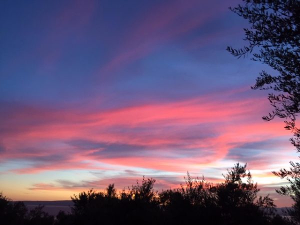 Es gilt aber auch die indirekt angestrahlten Wolken auf der dem Sonnenuntergang abgewandten Seite des Himmels zu bewundern.