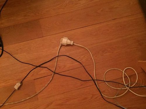 Kabel, Kabel überall. Kabelsalate haben wir hier in Holzkistchen aufgefangen, aber es gibt immer noch genug. Wir sind auf den Strom angewiesen. Die Vorstellung macht mir schon lange Angst und ich habe Kerzen, Taschenlampen und Streichhölzer an vielen Orten *g* deponiert und hoffe immer, daß ich nie alles verbrauche…