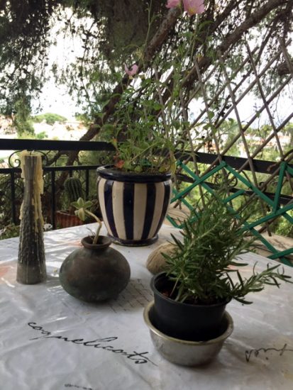 Ich mag ja solche schnellen Skizzen als Erinnerungsstützen weit mehr als Fotos, aber nicht immer ist es möglich. Auf dem Balkon war es dann auch nicht nötig, schnell zu zeichnen. Also machte ich eine größere und sorgfältigere Zeichnung vom Pflanzen-Sammelsurium auf dem Balkontisch.