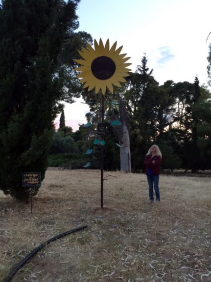 Zusammen mit einer Nachbarin, Freundin und Malerin drehte ich auch heute abend im Syngrouwald meine Runden. Das weitläufige Gebiet nicht weit von unserer Wohnung ist von einer hohen Mauer umgeben. Ein paar Türchen gestatten den Zugang, es sei denn, es sind sehr feuergefährliche Tage. Dann bleiben die Türen geschlossen.