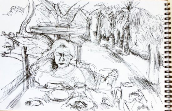 Gemeinsam Zeichnen (2): im Garten und bei Babis am Meer