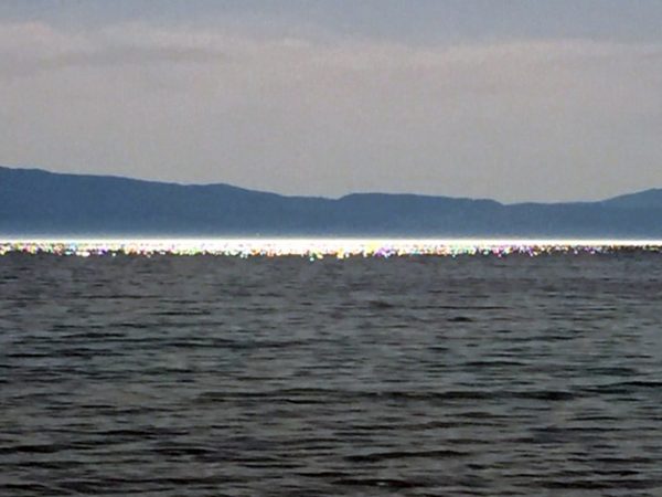 Kennst du das? Am Horizont glitzert und funkelt in schmaler silberner Streifen, der Streifen verbreitert sich, kommt auf dich zugerollt, langsam, unwiderstehlich, und schließlich tanzen Funken auch auf den ufernahen Wellchen? Der Zauber ist kaum zu beschreiben. Und natürlich auch nicht im Foto festzuhalten, denn es ist die Bewegung, dies Herannahen des Lichts, das bezaubert. Ich habe es dennoch versucht.