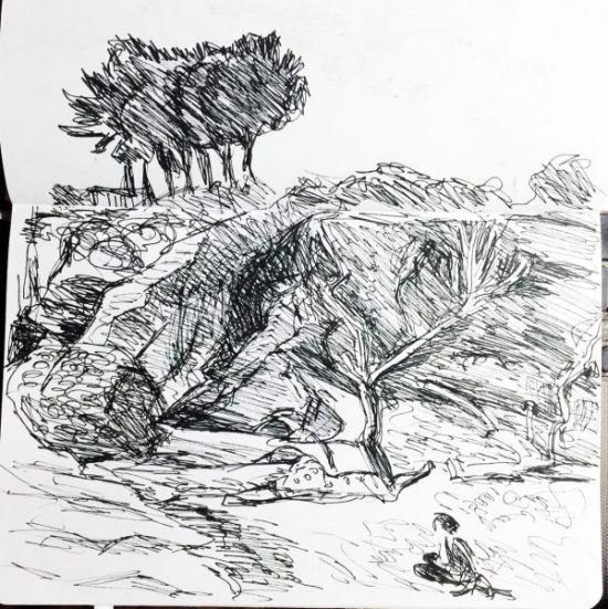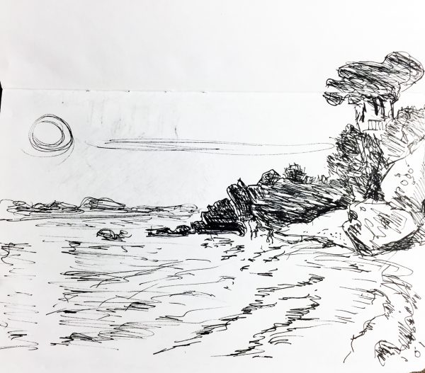 Tägliches Zeichnen: die Bucht, die Küstenfelsen