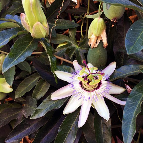 Passiflora, zu deutsch Passionsblume, griechisch ρολόι (roloi = Uhr)