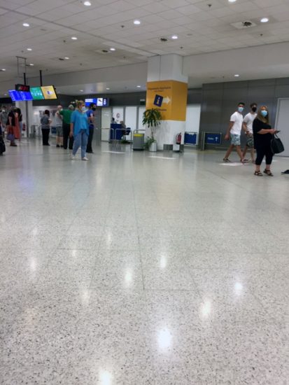 Es ist Pfingstmontag, zudem auch Sommersonnenwende. Zwei Abende zuvor saß ich maskiert am Athener Flughafen, den Sohn abzuholen. Durch diese Glastür wird er kommen, ich will ihn fotografieren, so wie vor anderthalb Jahren, Anfang Januar 2020, fröhlich, unmaskiert und ahnungslos, auf diesem Flughafen. Wie damals, als ich sein Ankommen mit einer Reihe von Bildern feierte (auch hier)