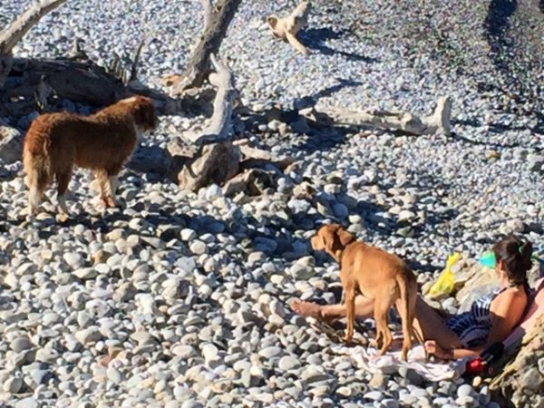 Nanu, die beiden Frauen mit den Hunden kenne ich doch? Sie wohnen im Nachbardorf, aber hier sind die Hunde freier.