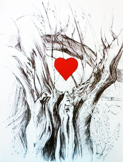 es stimmt, dass das Herz die wunderschöne Zeichnung in den Hintergrund drängt, aber ohne den Olivenbaum wäre die Herzbotschaft flach und unbedeutend. Erst die Zeichnung macht sie zu etwas ganz Besonderem…