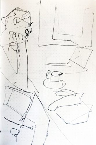 Überblendungen 6 : Mann am Computer (tägliches Zeichnen, blind)