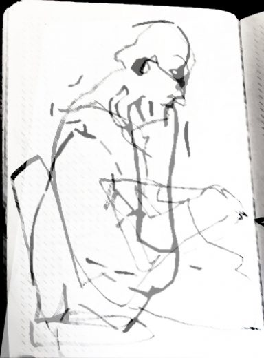 Überblendungen 6 : Mann am Computer (tägliches Zeichnen, blind)